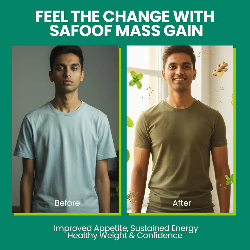 Safoof Mass Gain is a herbal supplement designed to help you gain healthy weight naturally. It improves appetite, strengthens digestion, and boosts your body’s energy and stamina.